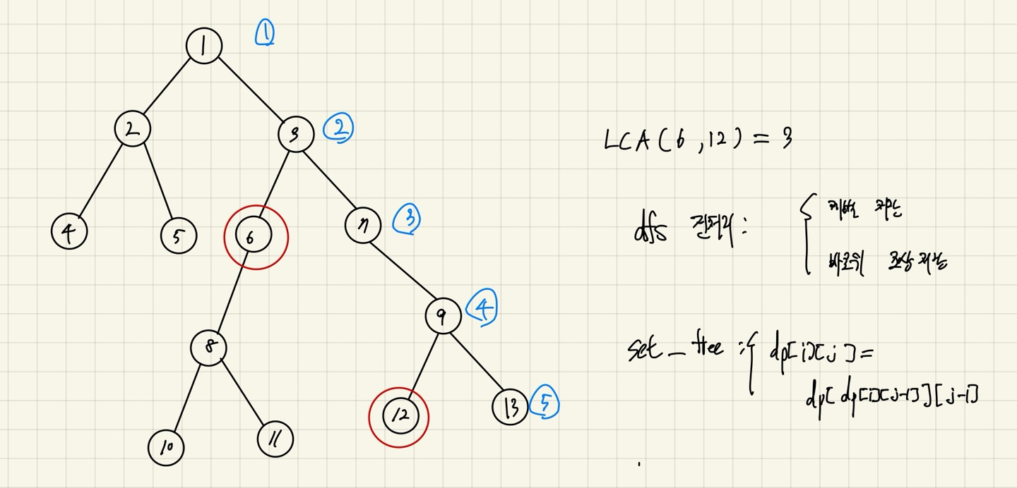 즉 LCA(6, 12) = LCA(6, 7) 과 같다.