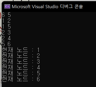 cout << "현재 노드 : " << here << '\n';