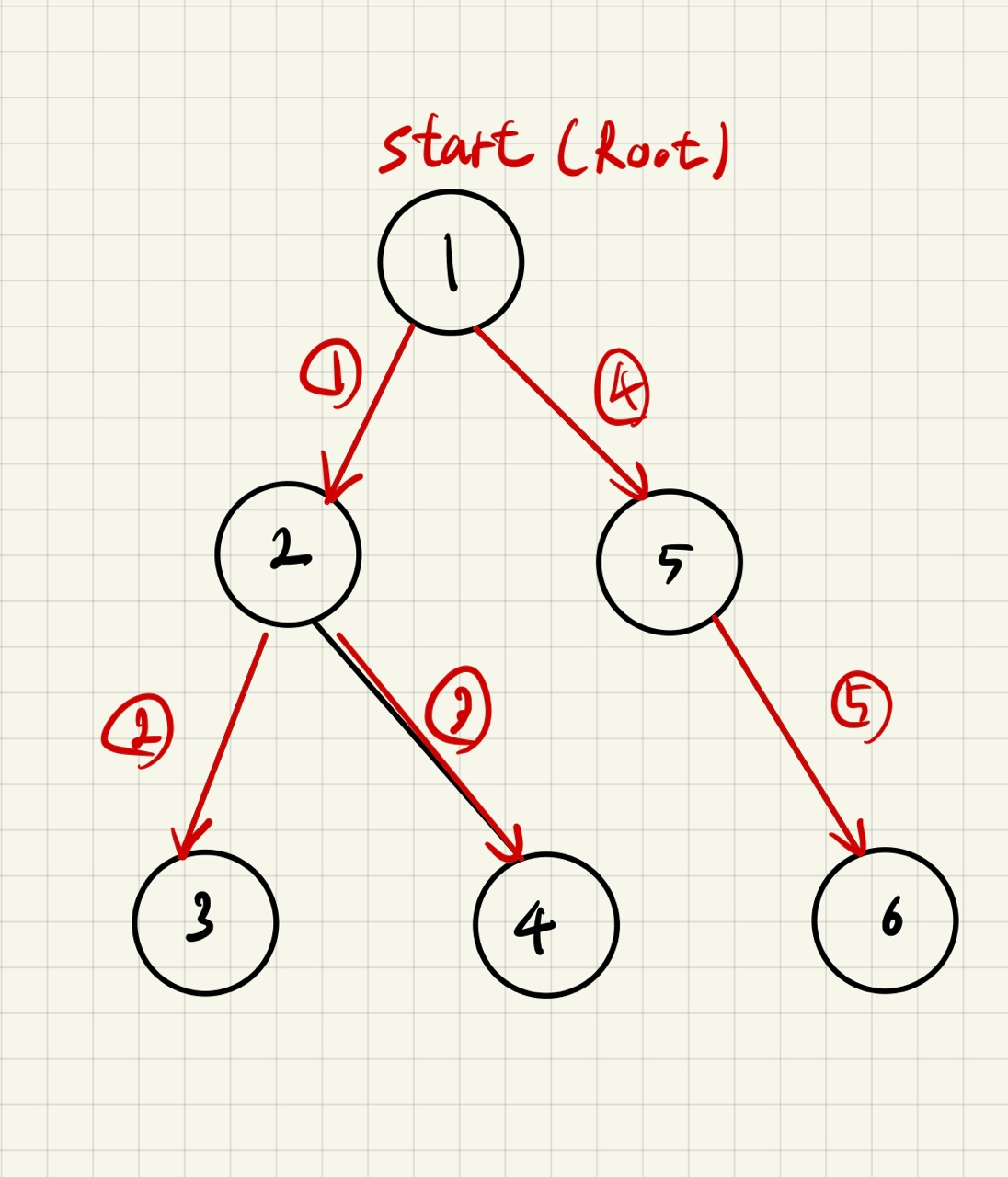 가장 인접한 노드(자식노드) 2, 5중 더 작은 번호로 가는 것으로 여기선 가정하겠습니다.
