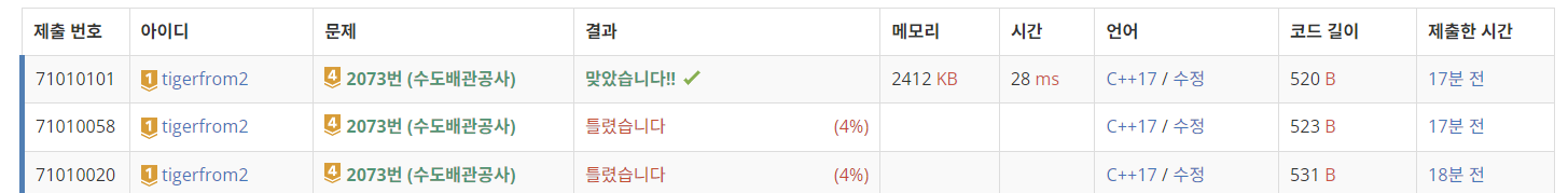 2073번: 수도배관공사
