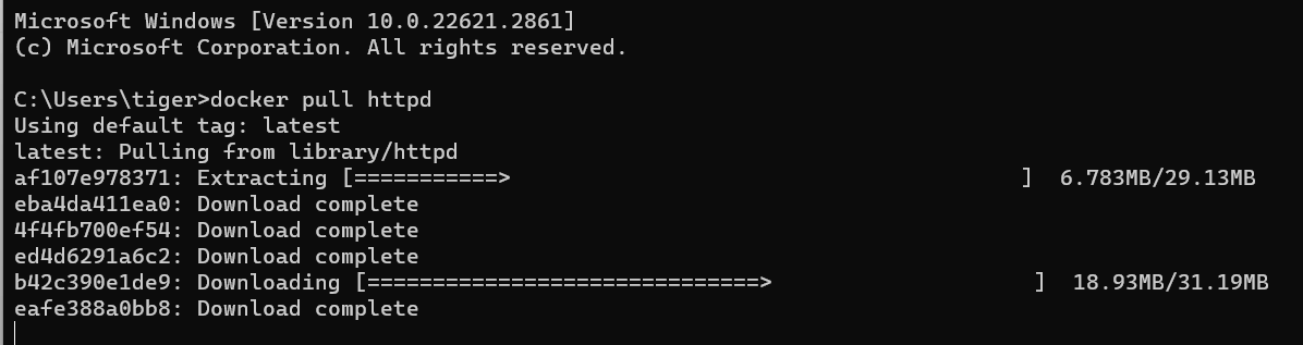 - 그리고 오른쪽의 명령어를 입력하면 터미널에서 패키지를 다운받는 것 처럼 손쉽게 이미지를 다운 받을 수 있다.