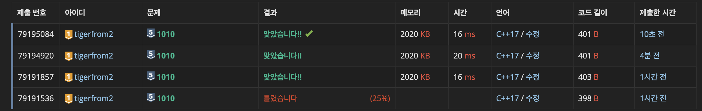 이제 이것을 코드로 바꾸고 dp를 구성한 다음 답을 출력하면 끝이다.