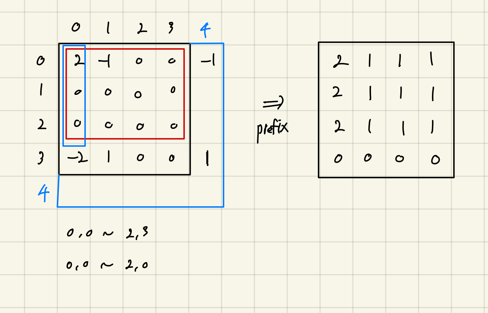 - resultfix[i - 1][j - 1] + prefix[i - 1][j - 1];