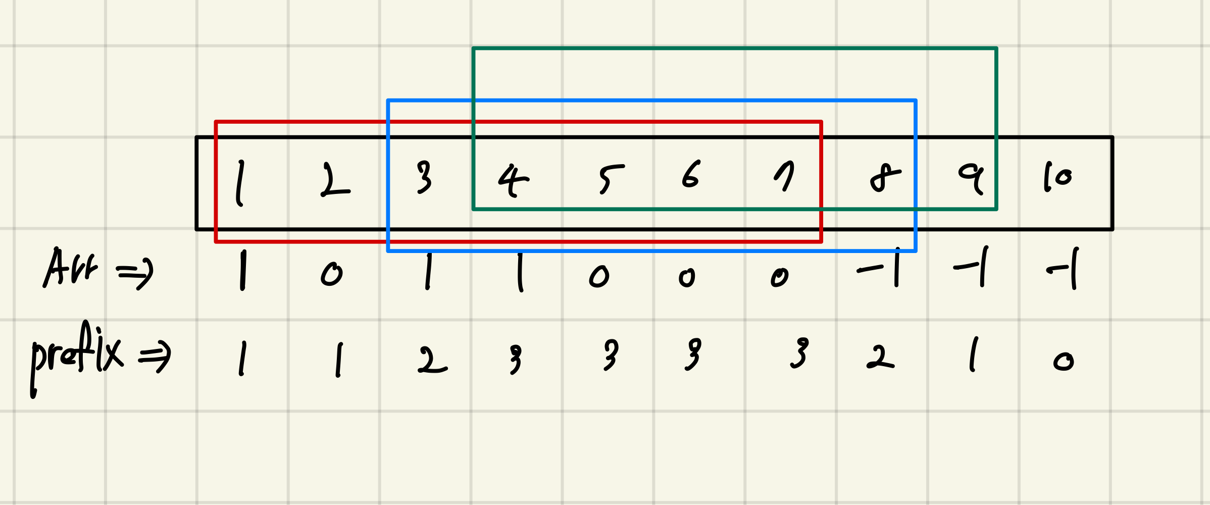 누적합을 사용하면 효율적으로 풀 수 있는 문제였지만 난 생각해내지 못했다.. 아이디어는 다음과 같다.