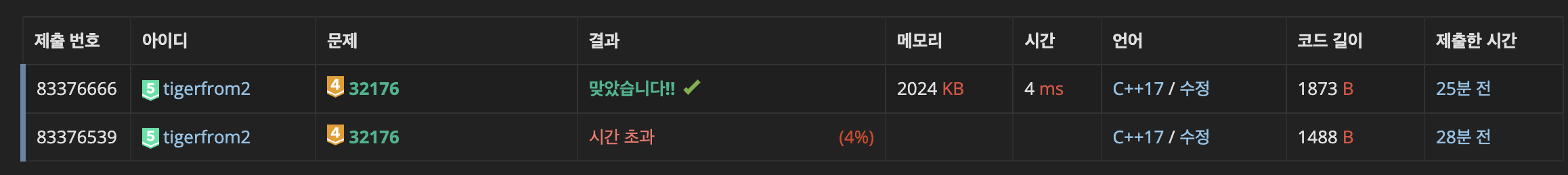 으로 최적화가 가능하다. 위의 방식은 아주 많은 경우의 수를 찾아야하기 때문에 TLE가 발생한다.