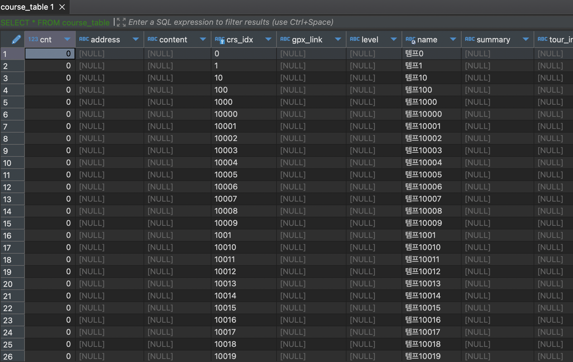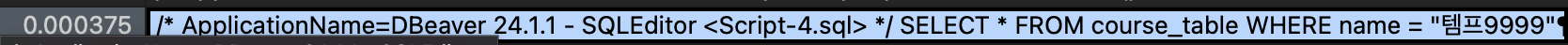 SELECT * FROM course_table WHERE name = "템프9999";