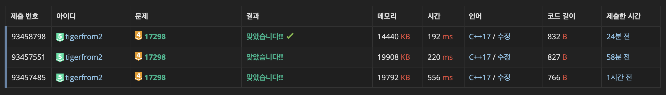 그래서 정답코드 보면 스택의 변수명이 pq이다. 여기서 priority_queue로 바꿔도 정답이 된다. 그러나 로그시간으로 폴리노미얼타임보다 느리다.